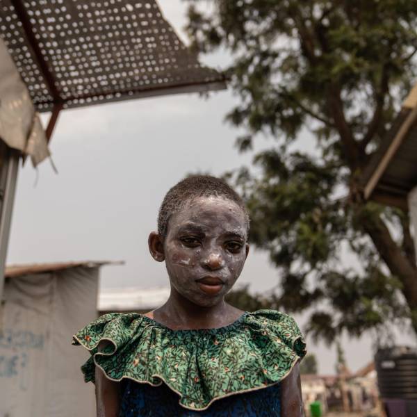 Lucie Habimana, de 13 años, tiene la cara cubierta con ungüento después de recibir tratamiento para el mpox en el Centro de Salud Munigi en Munigi, República Democrática del Congo, el 16 de agosto de 2024.( )