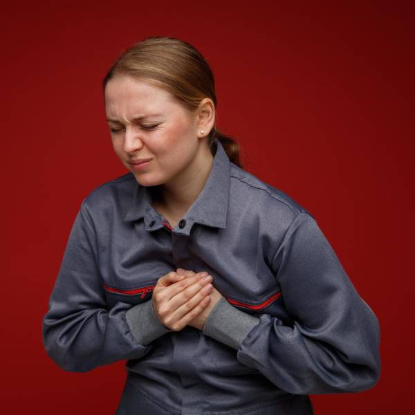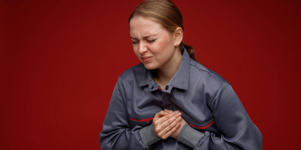 Foto referencial de una mujer con dolor de pecho.( )