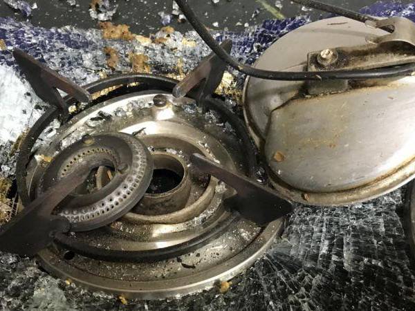 La estufa de la casa de Lucileide, en Recife, quedó destruida después de que explotó la olla.