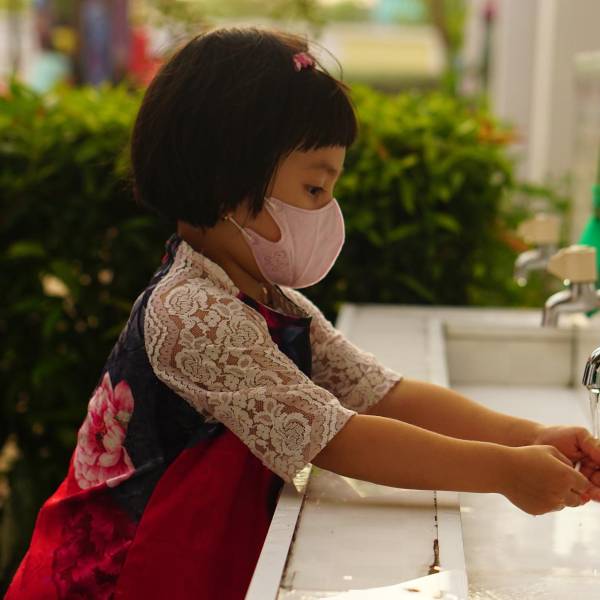 Niños protegiédose del coronavirus.