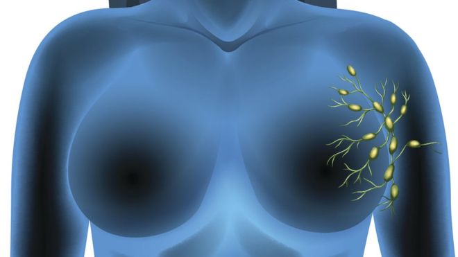 Muchas veces cuando se hace un diagnóstico positivo de cáncer, se procede a extirpar gran parte de los ganglios linfáticos que están alrededor del seno.