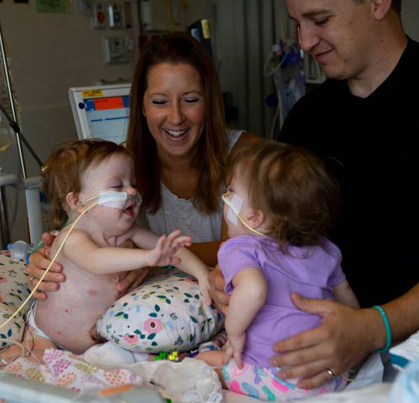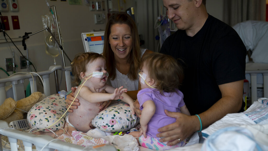 Los padres, Alyson y Phil Irwin, se enteraron de que iban a tener siamesas durante un ultrasonido en el 2019, cuatro meses antes del nacimiento por cesárea. Los Irwin sabían que las niñas pudieran no sobrevivir lo suficiente como para operarse, pero lo hicieron.