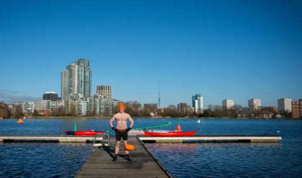 Bañándose en aguas a 3,9 grados una mañana de invierno en Londres.( )
