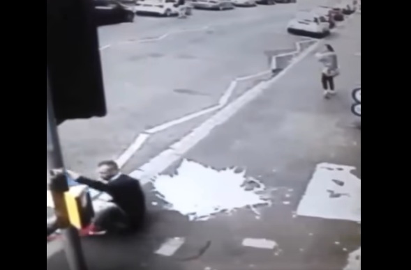 Un hombre hace la compra en una tienda y al salir a la calle se fija en una mujer. Al parecer, queda tan 'hechizado' por sus andares que es incapaz de girar la cabeza y sigue caminando sin mirar hacia delante, hasta que un seco golpe contra un semáforo le hizo volver a la realidad. Puede que después, volviera a la tienda a por más leche.