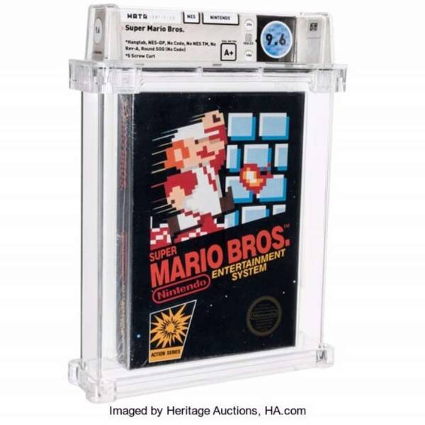 El videojuego, con descripción Super Mario Bros. "-Wata 9.6 A+ Sealed [Hangtab, 1 Code, Mid-Production], NES Nintendo 1985 USA" en Heritage Auctions, fue originalmente comprado por un individuo como regalo de Navidad a finales de 1986, pero se quedó "en el cajón de un escritorio", según ha descrito la casa de subastas.