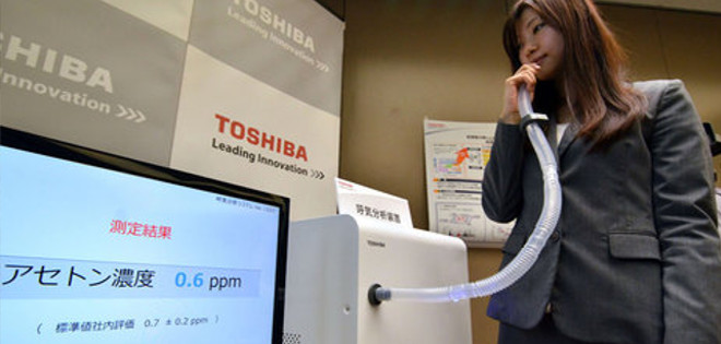 El grupo japonés de electrónica Toshiba presentó hoy un medidor de aliento capaz de analizar la combustión de grasa corporal y que podría emplearse para el diagnóstico médico o en el ámbito deportivo, según la compañía.