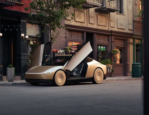 El prototipo es un vehículo sin volante ni pedales, y su diseño futurista está inspirado en el Cybertruck, con puertas que se abren hacia arriba, tiene capacidad para dos pasajeros.