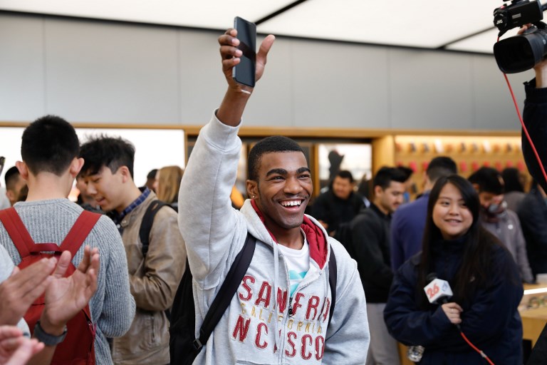 Lo mismo ocurría en París, en el barrio de la Ópera, donde algunos compradores acudieron a buscar su celular. También se acercaron a la tienda algunos curiosos para ver el modelo aniversario -la "X" evoca los diez años del celular inteligente de Apple-.