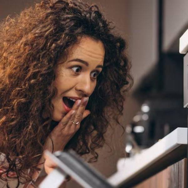 Imagen referencial de un ama de casa asombrada por el nuevo electrodoméstico que destronará a las freidoras de aire en el mundo de la preparación de alimentos. ( )