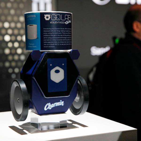 Una marca de papel de baño mostró su creación en una exposición anual de tecnología.