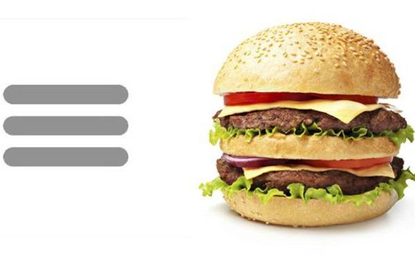 Estas tres líneas han ido tomando peso y se han ganado su propio nombre: el ícono de la hamburguesa, por su parecido con una hamburguesa - una vez despojada del resto de sus ingredientes- entre dos mitades de un panecillo.