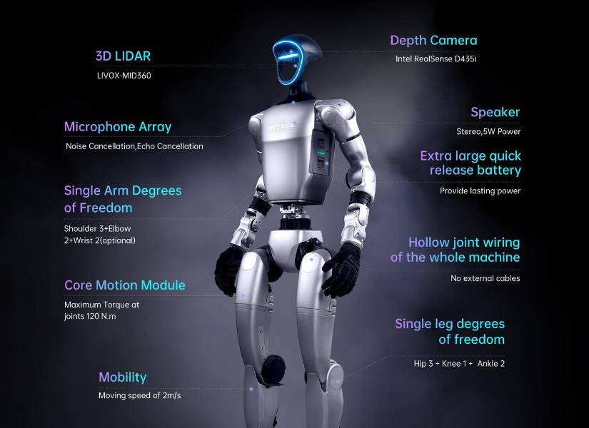 Cada robot G1 pesa 35 kg y mide 1,30 cm, tienen una cámara y micrófono integrado, cuenta con sensores avanzados de visión, movimiento y entorno. Y próximamente habrá nuevas versiones donde seguramente tendremos mejorías interesantes.